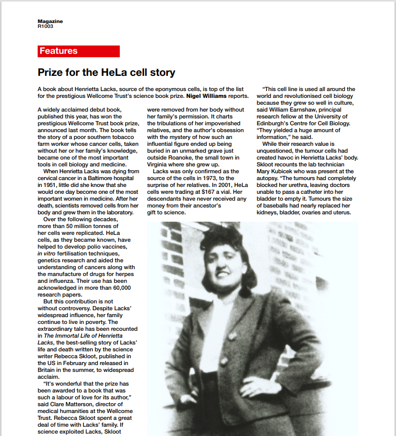 A storm caused by a cell lineAt the same time as this amazing discovery, there are countless sad stories.Although the HeLa cell line has brought tremendous research value and economic value over the years, the family members of Ms. Henrietta Lacks still cannot afford to go to the hospital.